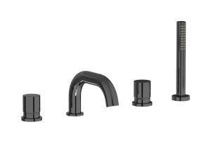 Смеситель на бортик ванной на 4 отверстий с дивертером и душевым гарнитуром. WE ARE IB rr396cs Brushed Black Chrome Brera