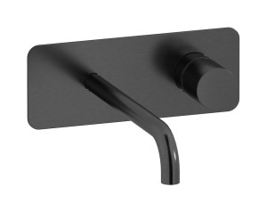 Встроенный в стену смеситель для раковины на 2 отверстия с длинным изливом в комплекте с донным клапаном WE ARE IB rr207cs Brushed Black Chrome Brera