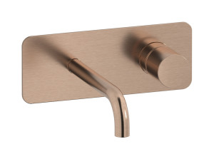 Встроенный в стену смеситель для раковины на 2 отверстия с длинным изливом в комплекте с донным клапаном WE ARE IB rr207sr Brushed Rose Gold Brera