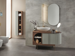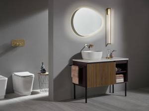 Напольная раковина из ясеня с зеркалом