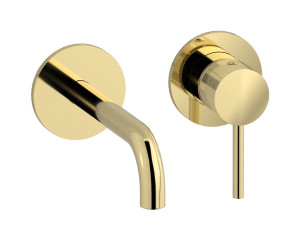 Встроенный в стену смеситель для раковины на 2 отверстия в комплекте с донным клапаном. WE ARE IB id406ii Pale Gold Industria