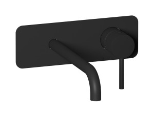 Встроенный в стену смеситель для раковины на 2 отверстия с длинным изливом в комплекте с донным клапаном. WE ARE IB id207np Matt Black Industria