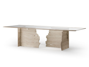 Травертин и стеклянный обеденный стол