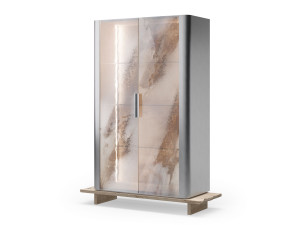 Шкаф из сатиновой стали с травертиновым верхом