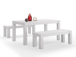 Выдвижной стол из белого ясеня с 2 скамейками