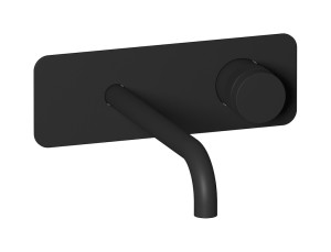 Настенный смеситель для раковины прогрессивный на 2 отверстия с длинным изливом в комплекте с донным клапаном. WE ARE IB rx207np Matt Black Reflex