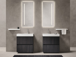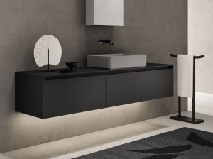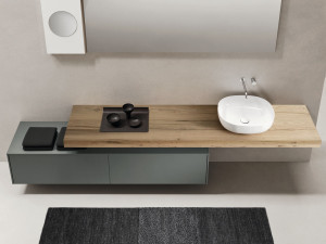 Шкаф для умывальника Laminam® с одной деревянной раковиной и встроенной раковиной