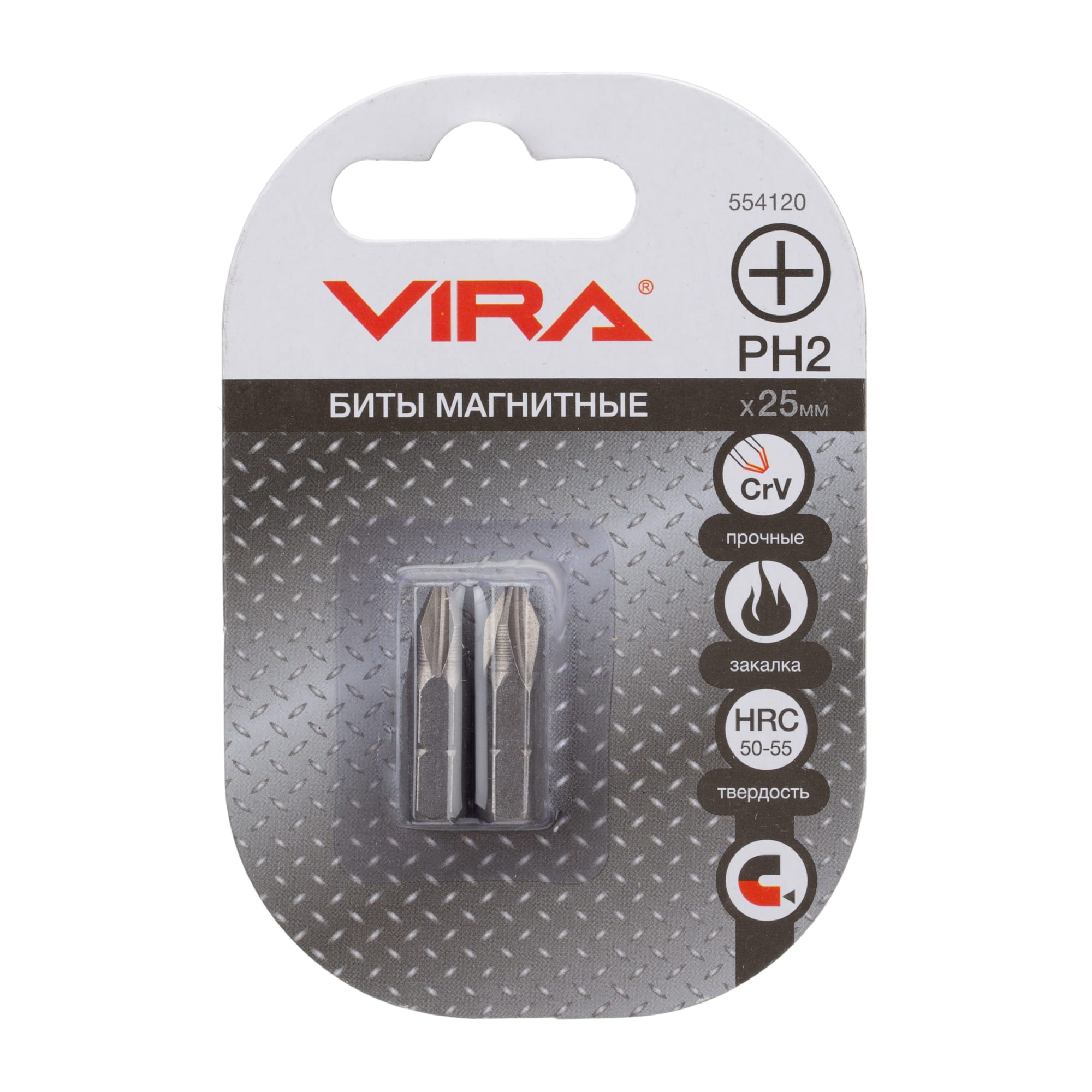 Комплект из двух крестовых бит формата PH2 от бренда VIRA обеспечивает точное и быстрое выполнение монтажных работ любой сложности.