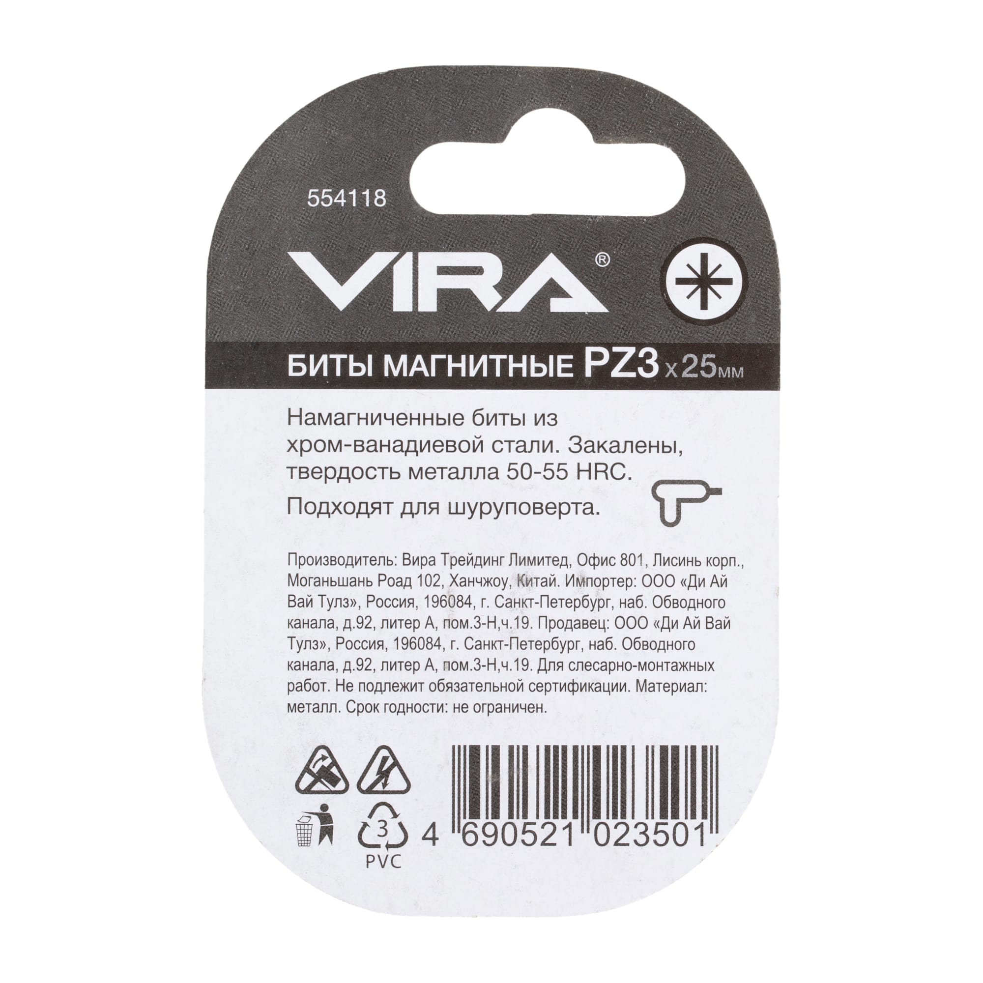 Набор бит VIRA PZ3 магнитные 25 мм, 2 штуки для точного монтажа 82619656 STLM-0031916