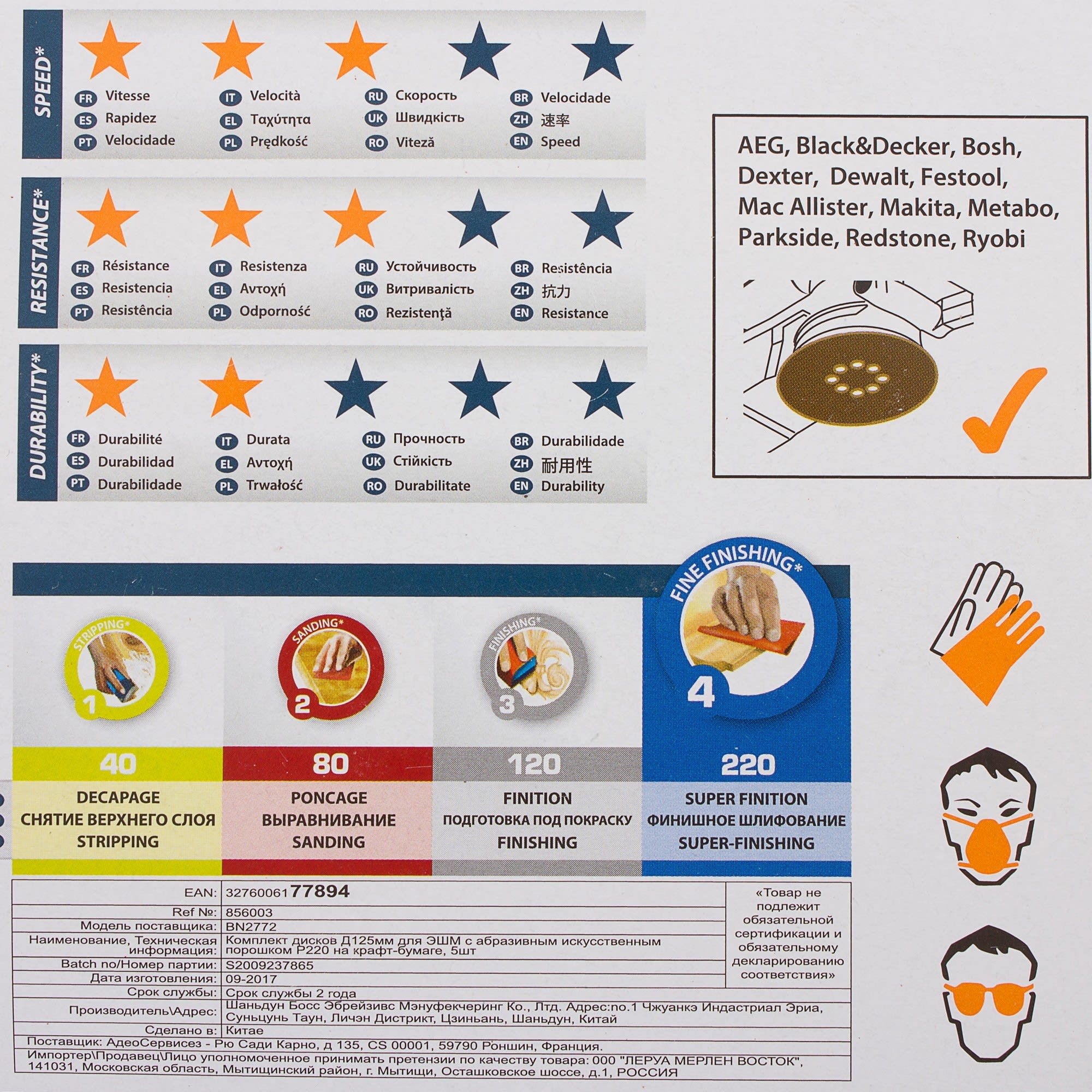 • Зернистость P220 для тонкой финишной обработки