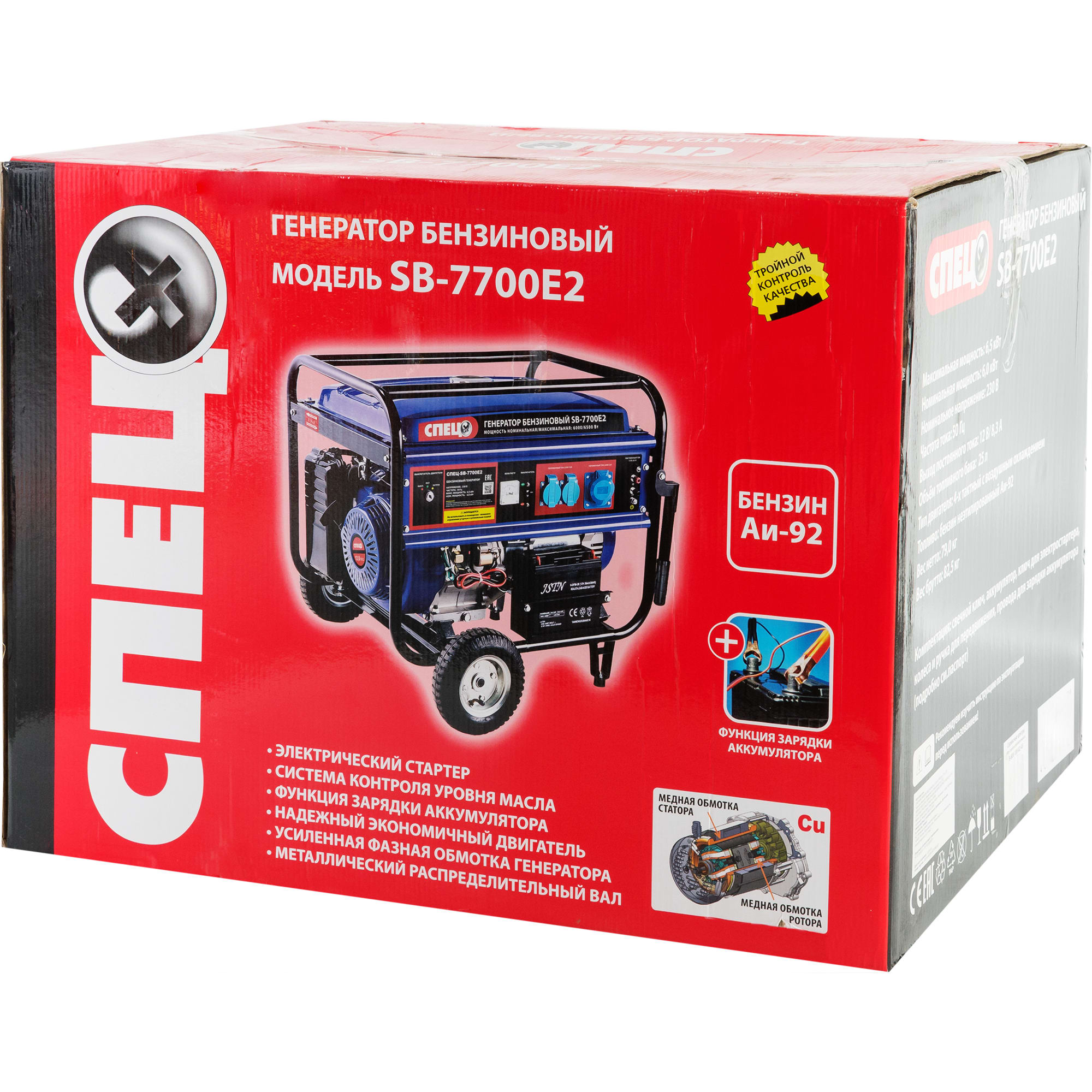 Бензиновый генератор СПЕЦ SB-7700E2 с электростартером 6.5 кВт 82605120 STLM-0031315