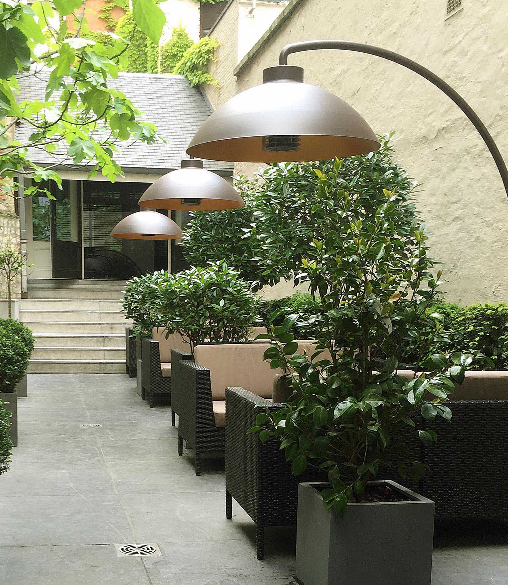 DOME от Heatsail - уличный обогреватель неподвластного времени с освещением, идеальный для сада или террасы. Идеален для проведения вечеров с семьей и друзьями, даже когда на улице холодно. Купол спроектирован и изготовлен в Бельгии. Технические характеристики: - Освещением и отоплением можно управлять отдельно - Две разные настройки нагрева - FAR-инфракрасная технология - Пульт дистанционного управления включен для освещения и обогрева - Регулируемый свет с дистанционным управлением - Изготовлен из нержавеющей стали и алюминия, может находиться на открытом воздухе круглый год. - 100% электрический, 3250 Вт - Потолочная розетка со встроенным управлением - Стандартные цвета - Черный RAL 9005 и Белый RAL 9003, по желанию - все цвета RAL - Тепловая мощность (Вт) 3100 Вт. - Resa luminosa (Вт) 120 Вт. - Электрическое подключение 220-240 В переменного тока - 50/60 Гц 14 А - Приблизительная отапливаемая площадь (м²) 19 м² - [204 кв. Футов] - Доступны регулируемые столы различной длины