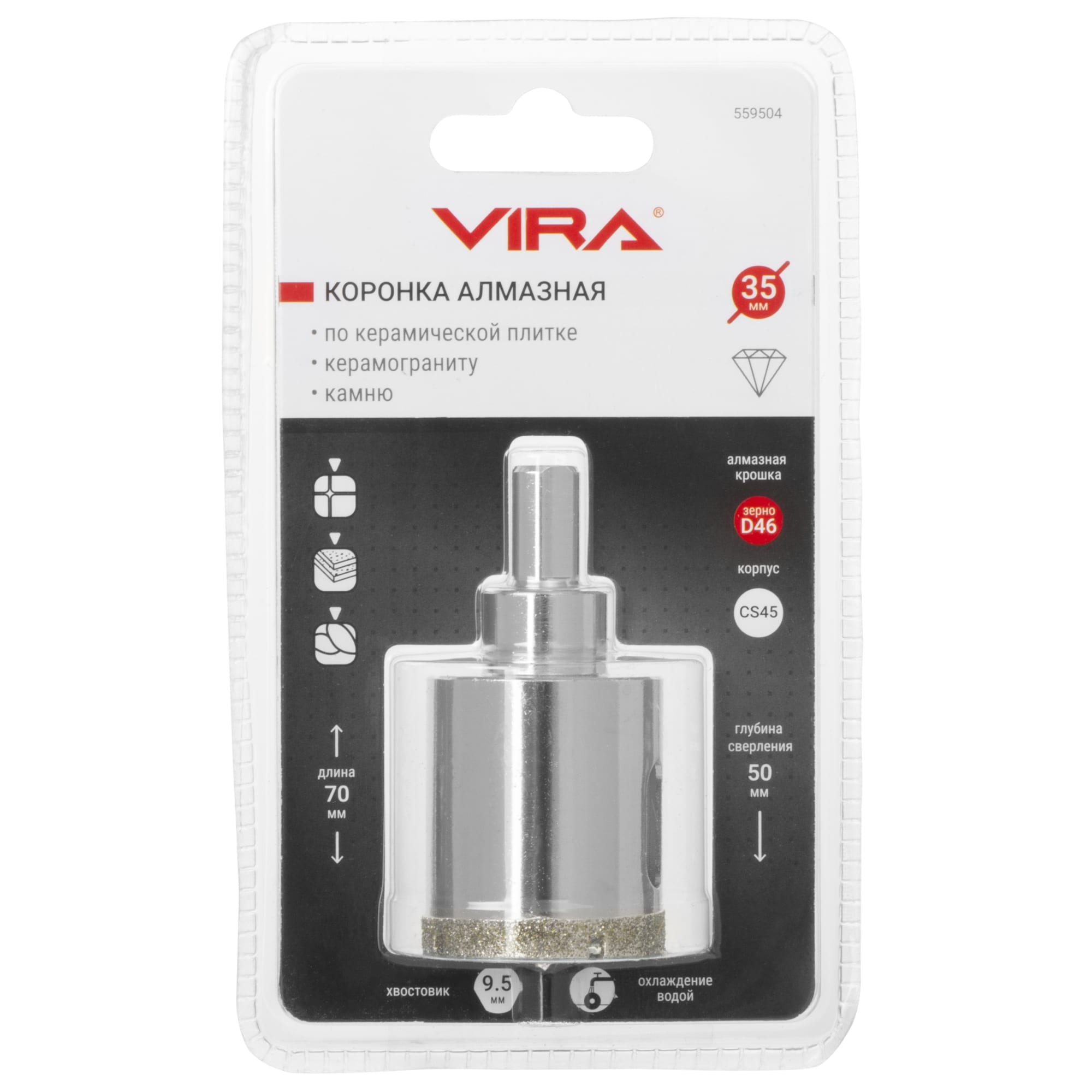 Алмазная коронка VIRA 35 мм для керамогранита и плитки 84721422 STLM-0054022