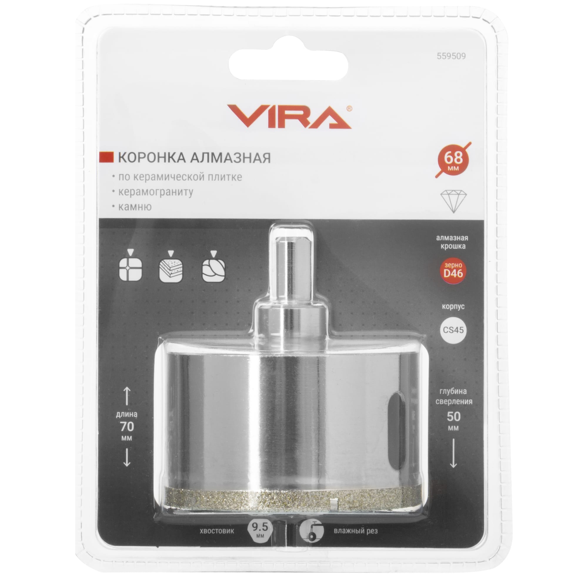 Алмазная коронка VIRA 68 мм для керамогранита и плитки 84721428 STLM-0054028