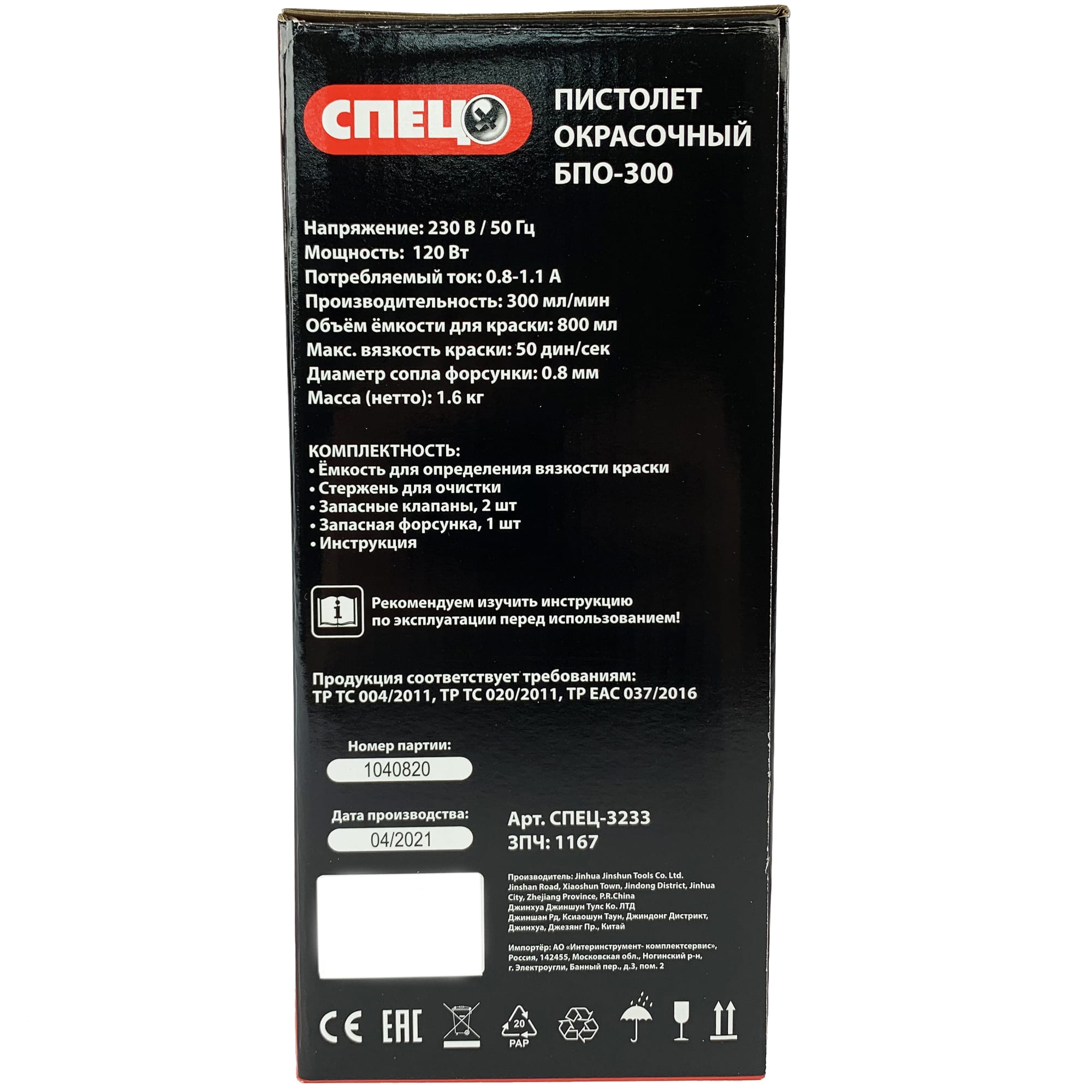 Краскопульт СПЕЦ БПО-300 для профессиональной покраски 85034823 STLM-0057791 предоставляется с гарантией 12 месяцев с момента покупки.