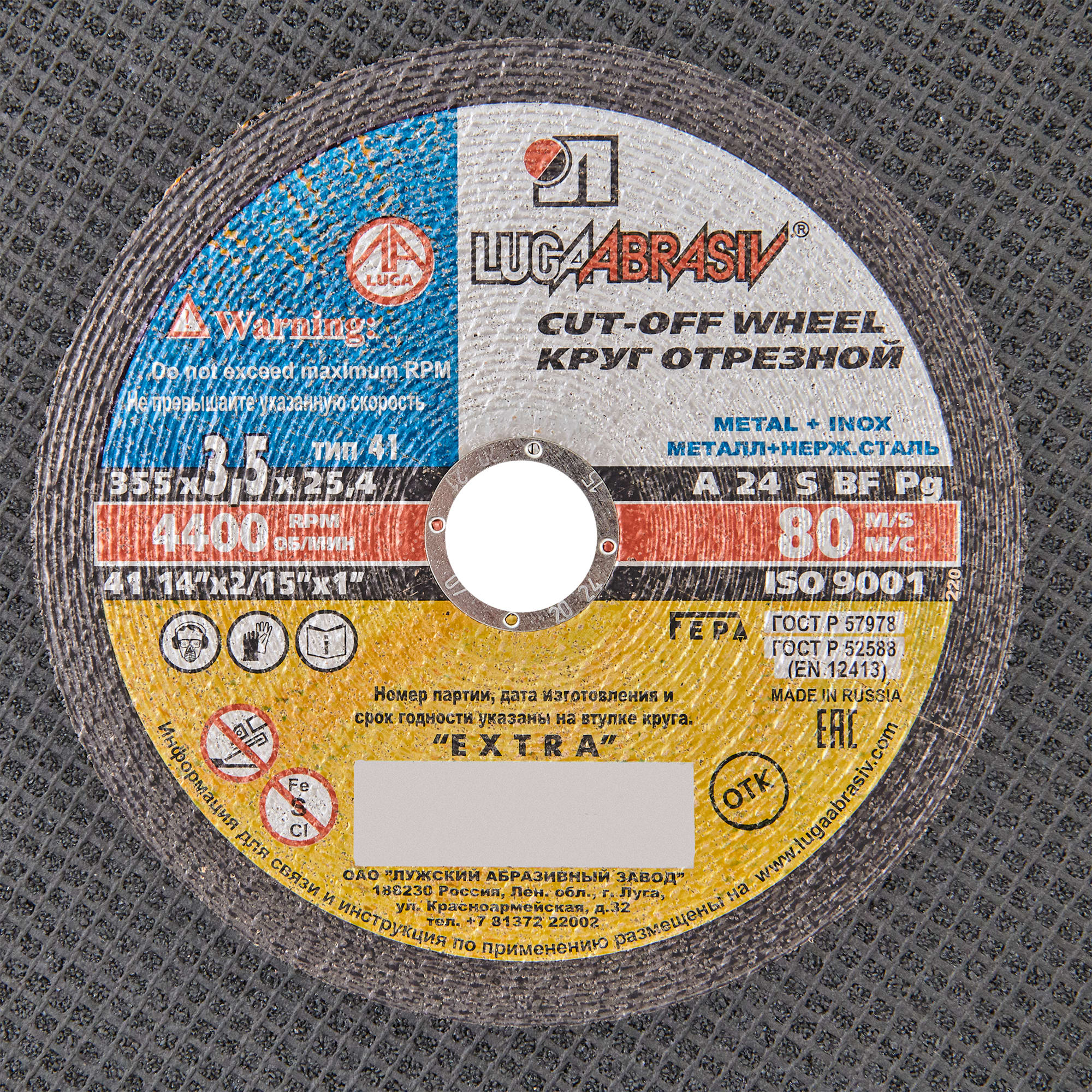 Отрезной круг Луга 355 мм для профессиональной резки металла 14267451 STLM-0004692