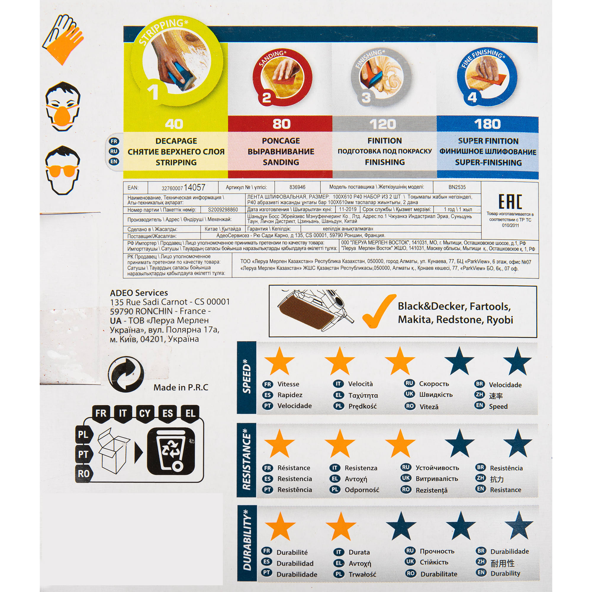 • Текстильная основа прочна и устойчива к воздействию влаги. За счет эластичности ткани при работе шкурка не рвется, принимает форму поверхности изделия.