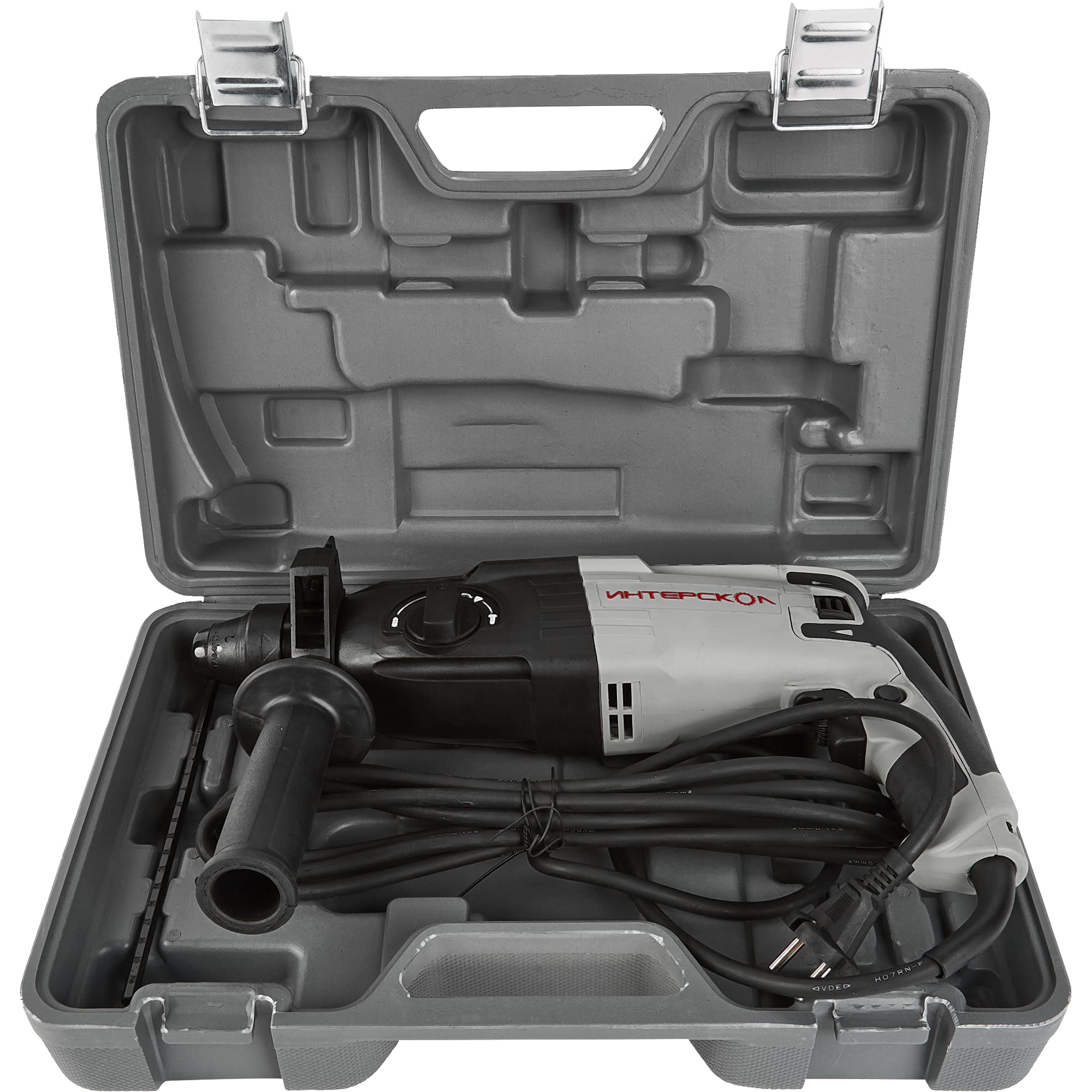 Аксессуары в комплекте •Перфоратор 1 шт. •Руководство по эксплуатации и Инструкция по безопасности 1 шт. •Гарантийный талон 1 шт. •Список сервисных центров 1 шт. •Рукоятка боковая 1 шт. •Ограничитель глубины бурения 1 шт. •Кейс пластмассовый 1 шт.
