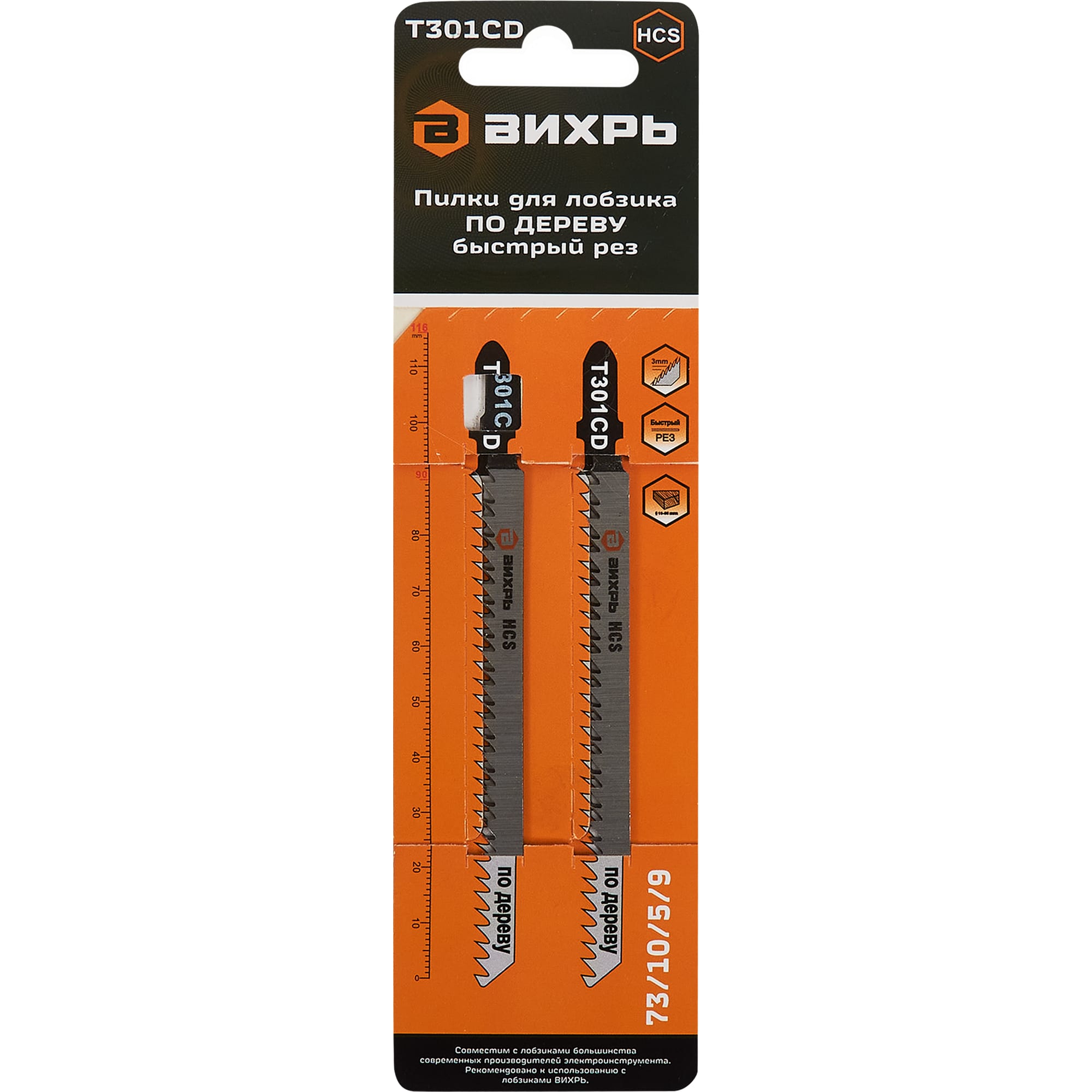Пилки для лобзика Вихрь Т301CD — быстрый рез по дереву, 2 шт 85121111 STLM-0059075