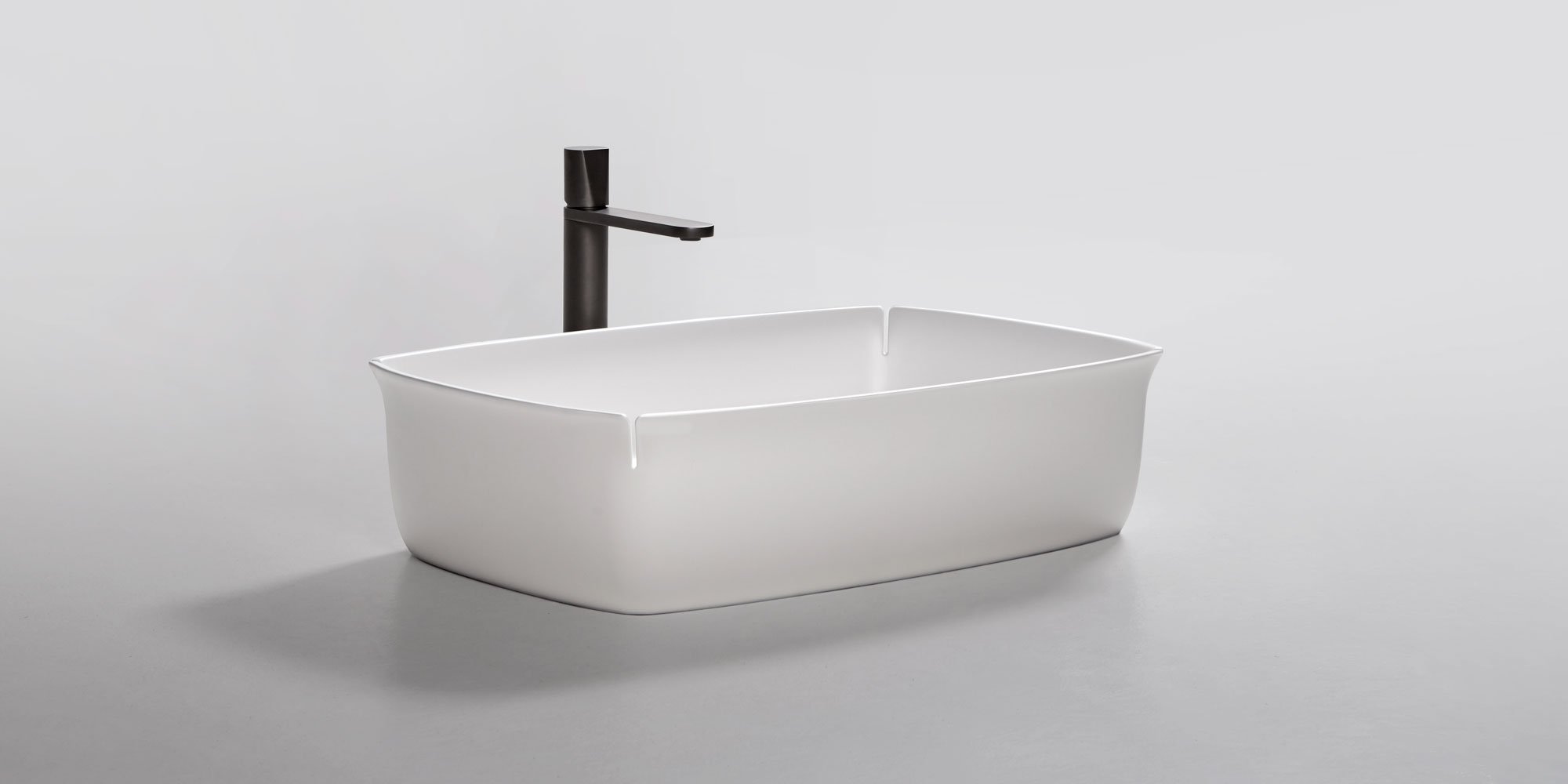 Тонкий и складной, как лист бумаги, уютный и глубокий, но в то же время легкий и нежный. Bloom - это раковина с верхним креплением оригинальной формы, которая исходит из строгой геометрии, но смягчает, подчеркивая тонкость материала и толщину границы, которая, кажется, сводится на нет. Мягкие линии, которые открываются вверх, приглашают использовать раковину и сопровождают жесты, облегчая восприятие, в то время как основание остается важным и хорошо прикрепленным к верху. & Nbsp; 4 разреза в углах относятся к изображению открывающейся коробки и становится визитной карточкой коллекции. Простые детали превращаются в современный декор и способствуют передаче смысла материала. На самом деле кажется, что лист отрывается под действием силы воды, но на самом деле кожух прочный, прочный и обеспечивает большую вместимость бассейна. Мойка с верхним креплением, которая подчеркивает тонкость материала, рассматривая его как формованный лист мягким, но геометрически строгим способом. Четыре разреза на концах подчеркивают его легкость, придавая ему почти ручной характер. Мягкие изгибы, представленные ниже, вместо этого придают основание объекта визуальную прочность.