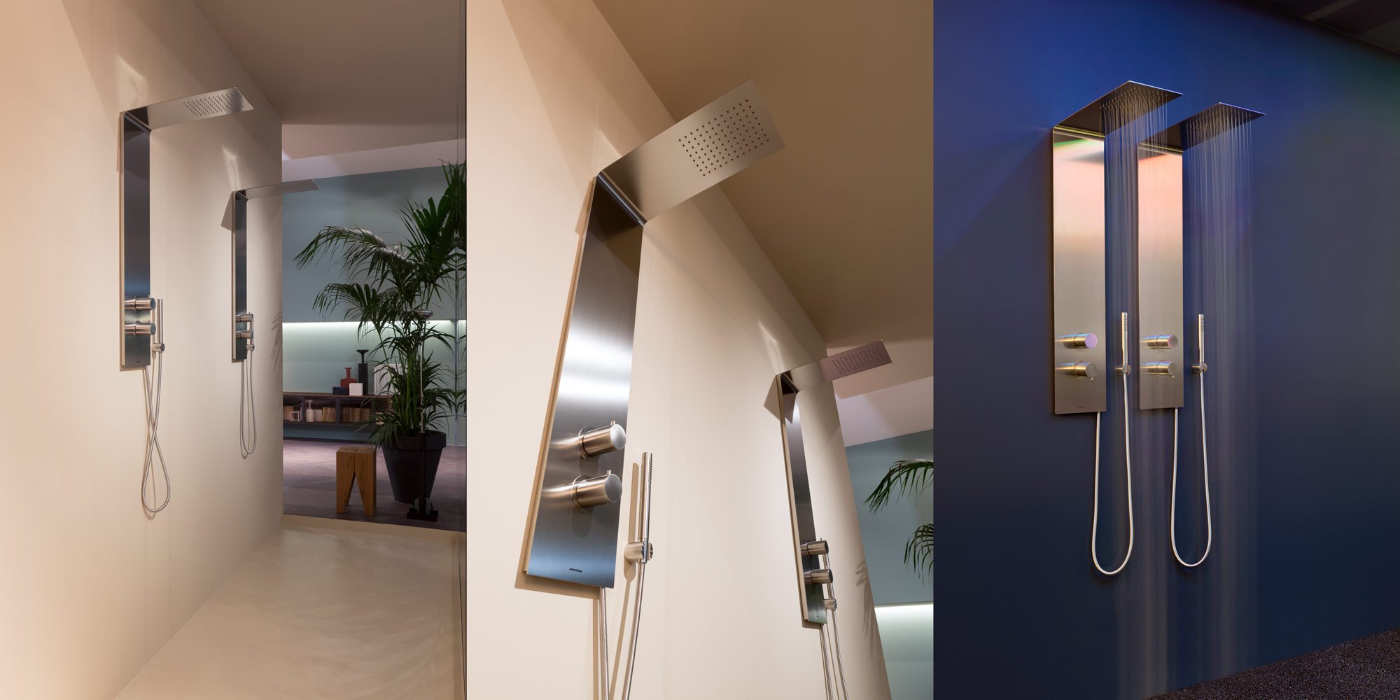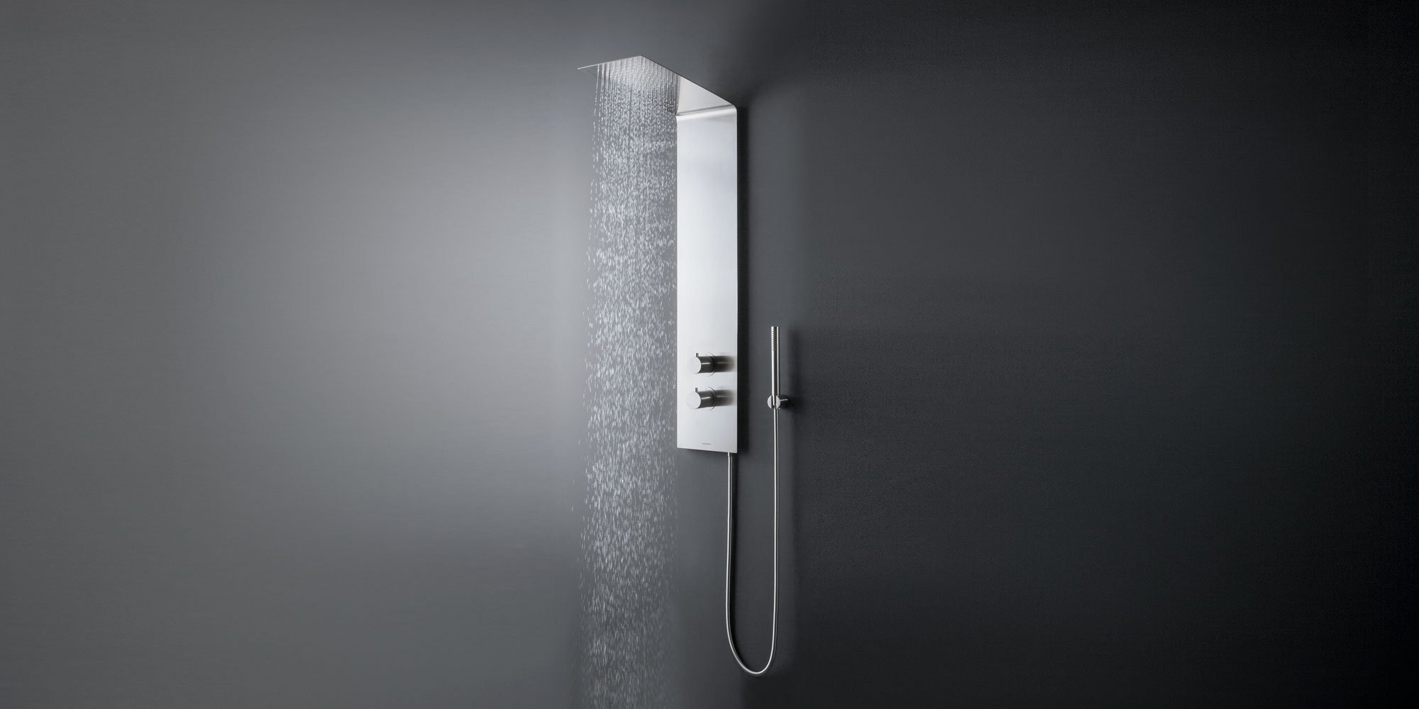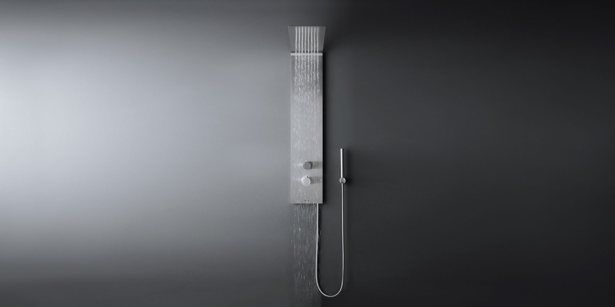 Сплошной элемент, чистая и незаменимая стальная пластина с четкими четкими линиями, которые органично сочетают душевую стойку и лейку. Vela предлагает элегантную поверхность из сатинированной нержавеющей стали, непрерывный профиль, который элегантно сочетает вертикальную часть колонны и горизонтальную часть головки, слегка наклоненную вверх, чтобы усилить диапазон осадков. Vela поставляется в комплекте с термостатическим смесителем, рукояткой управления с переключателем и ручным душем.