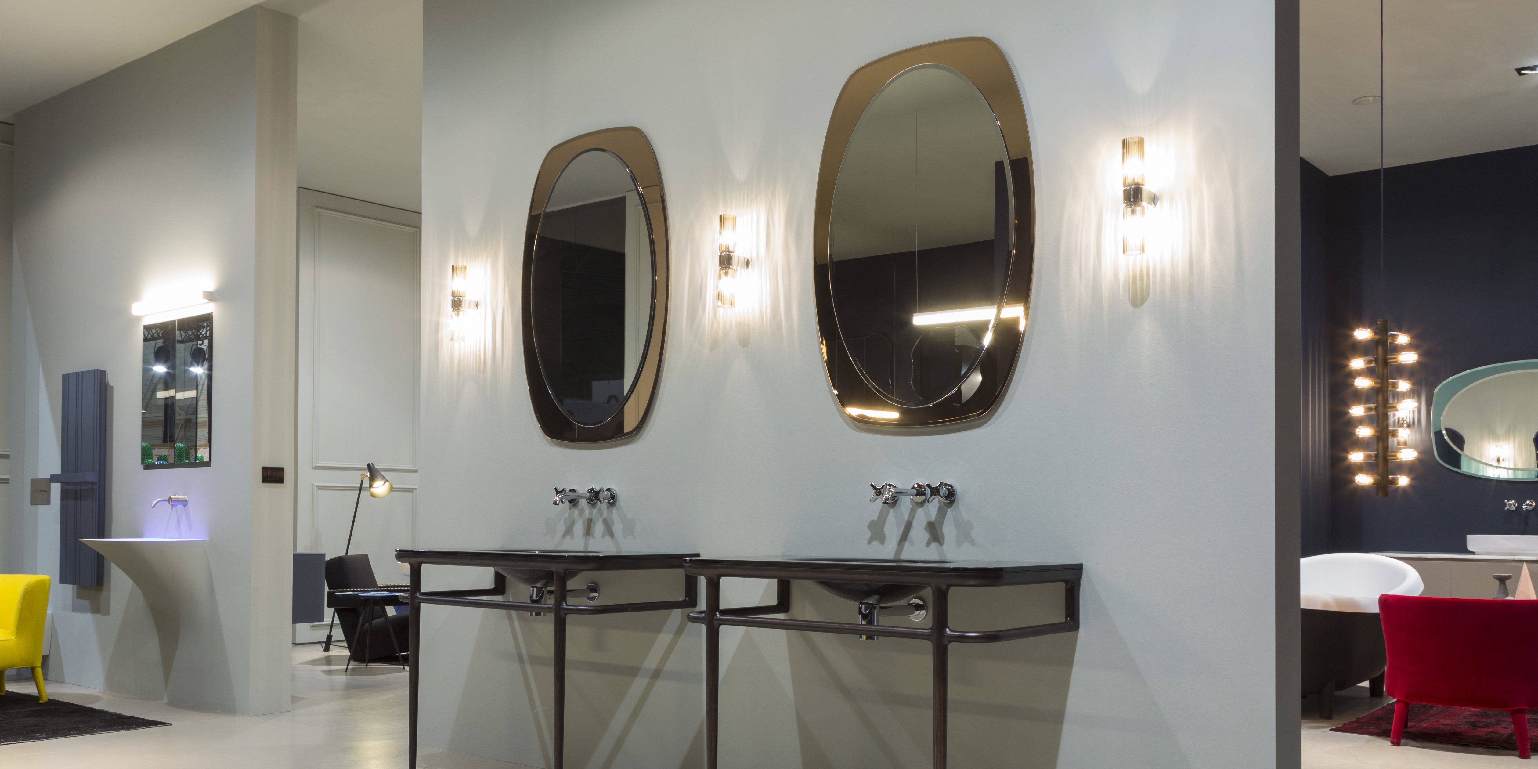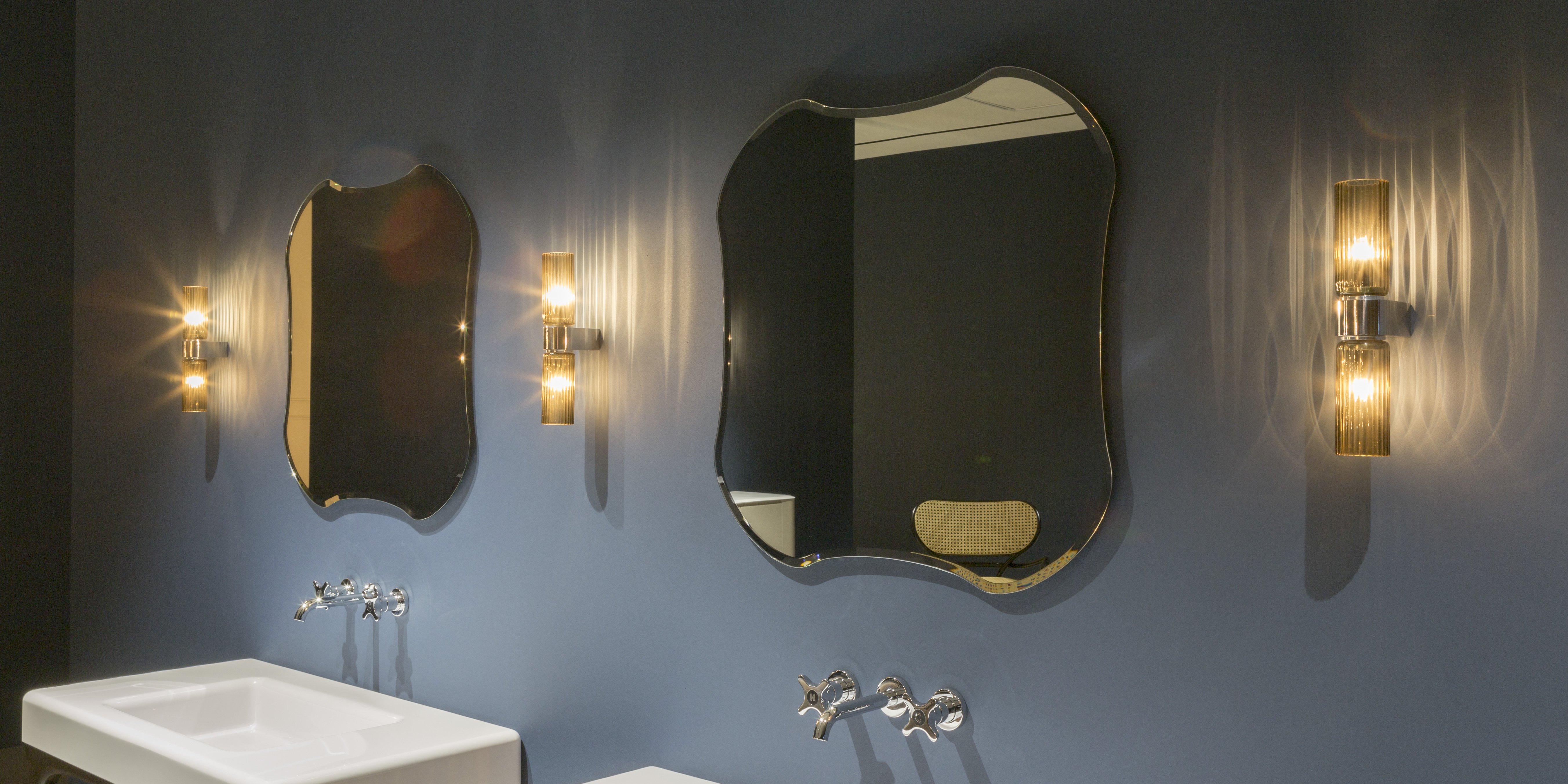 Атмосфера - это атмосфера 70-х, формы имеют явное ощущение ретро, ​​образы вызывают далекие, но живые воспоминания, связанные с нами, нашей историей и традициями, которые обновляются благодаря способности мечтать. Серия зеркал, разработанная для коллекции ILBAGNO, а точнее набор различных элементов, породивших то, что было предложено. Потому что все начинается с зеркал Luxor, теперь, как и тогда, формы, которые напоминают о происхождении компании, о первом опыте в ванной комнате. Сегодня Luxor - это уникальная коллекция, предлагающая забытые геометрические формы, которая обогащает зону раковины зеркальными поверхностями с яркой индивидуальностью. Различные элементы, которые часто сочетаются с разной отделкой и содержанием кадра, чтобы увеличить выразительность формы.