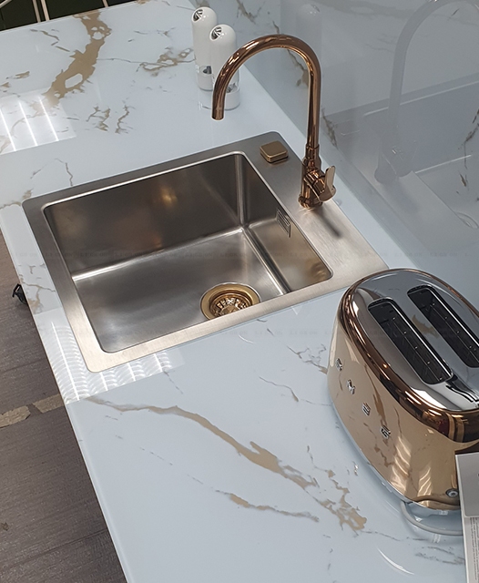 Возможность размещения в зонах сильного нагрева или непосредственно за газовой варочной поверхностью. Лучшая альтернатива неустойчивым к сильному нагреву материалам, таким как искусственный камень.
