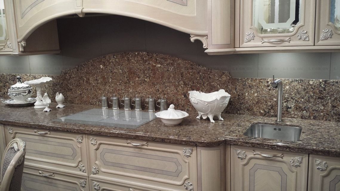 Поэтому имеются ограничения на изготовление столешниц с радиусами. Однако, LIGRON умеет обрабатывать кварцелан и изготавливать из него столешницы и стеновые панели с фигурными классическими профилями.