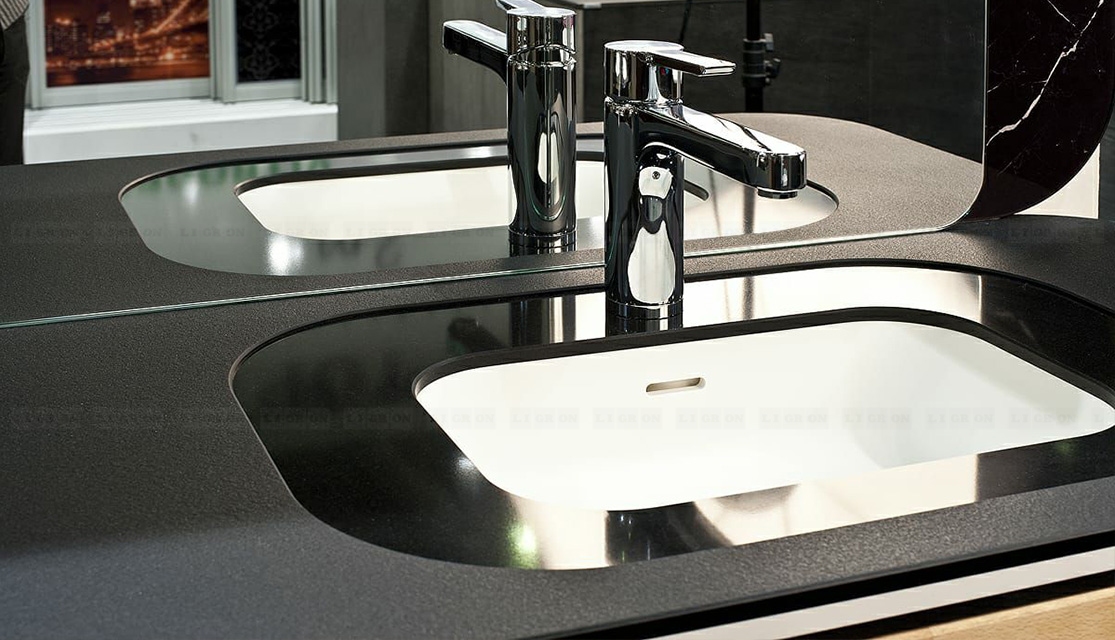 Поэтому имеются ограничения на изготовление столешниц с радиусами. Однако, LIGRON умеет обрабатывать кварцелан и изготавливать из него столешницы и стеновые панели с фигурными классическими профилями.